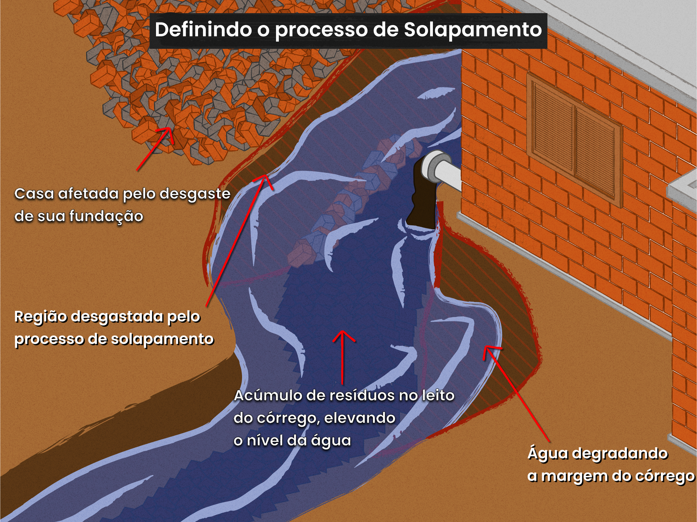 Ilustração do processo de solapamento que afeta a Viela do Monte, na Comunidade Futuro Melhor